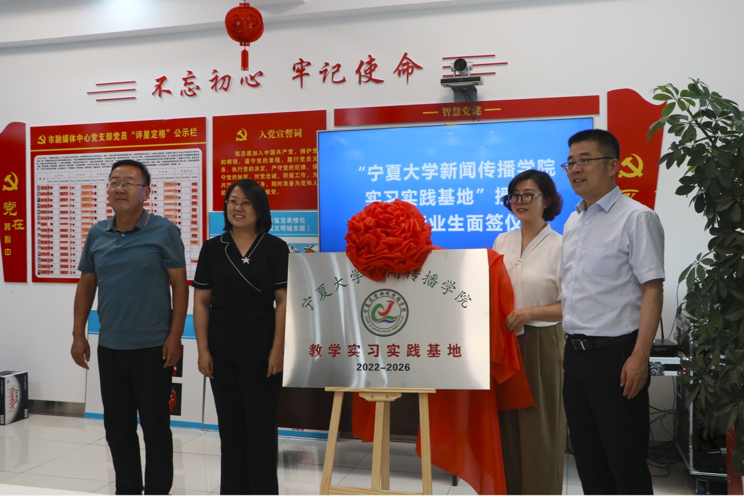 与会双方领导共同为实习实践基地揭牌,师生参观了灵武市融媒体中心,会后,部分2022届毕业研究生和本科生参加了灵武市融媒体中心的求职面试活动,签订了聘用意向书。