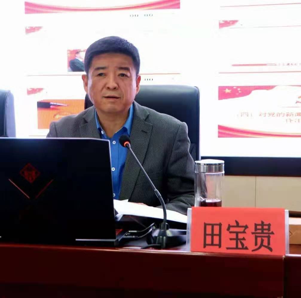 田宝贵老师在“对党的新闻舆论工作性质地位作出新定位”板块,引出了“舆论历来是影响社会发展的重要力量”的观点,他谈到,做好新闻舆论工作,营造良好舆论环境是治国理政,定国安邦的大事情。我们要把意识形态的领导权、管理权、话语权牢牢掌握在手中,任何时候都不能旁落,否则就要犯无可挽回的历史错误。田宝贵老师讲到“对党的新闻舆论工作职责使命作出新表述”时强调,高举旗帜引领导向就要坚持马克思主义指导地位,高举中国特色社会主义伟大旗帜,传达正确的观点、立场、态度,坚持国家站位、全球视野,提高国际传播能力,讲好中国故事,传播中国声音,阐述好中国特色,增强国际话语权。我们必须坚持正确的政治方向,自觉同以习近平同志为核心的党中央高度保持一致,始终听从党中央指挥,坚决维护党中央权威,让党中央绝对放心。在介绍“对党的新闻舆论工作方针原则作出新论断”时,田宝贵老师说道我们要牢牢坚持党性原则,必须自觉在思想上政治上行动上同党中央保持高度一致,牢牢坚持马克思主义新闻观。
