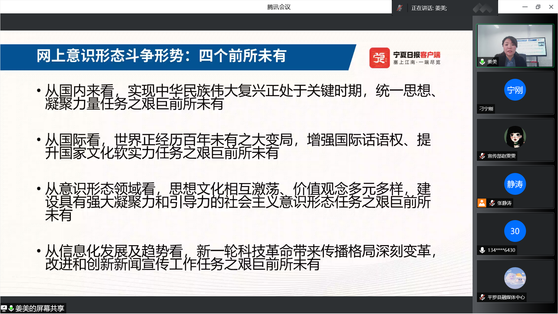 共同举办2022年全区第四期马克思主义新闻观培训。此次培训的主题是“增强斗争意识 提高斗争本领 坚决守好网上意识形态阵地”,特邀宁报集团舆情研究室主任、新媒体频道负责人姜美主讲,91视频