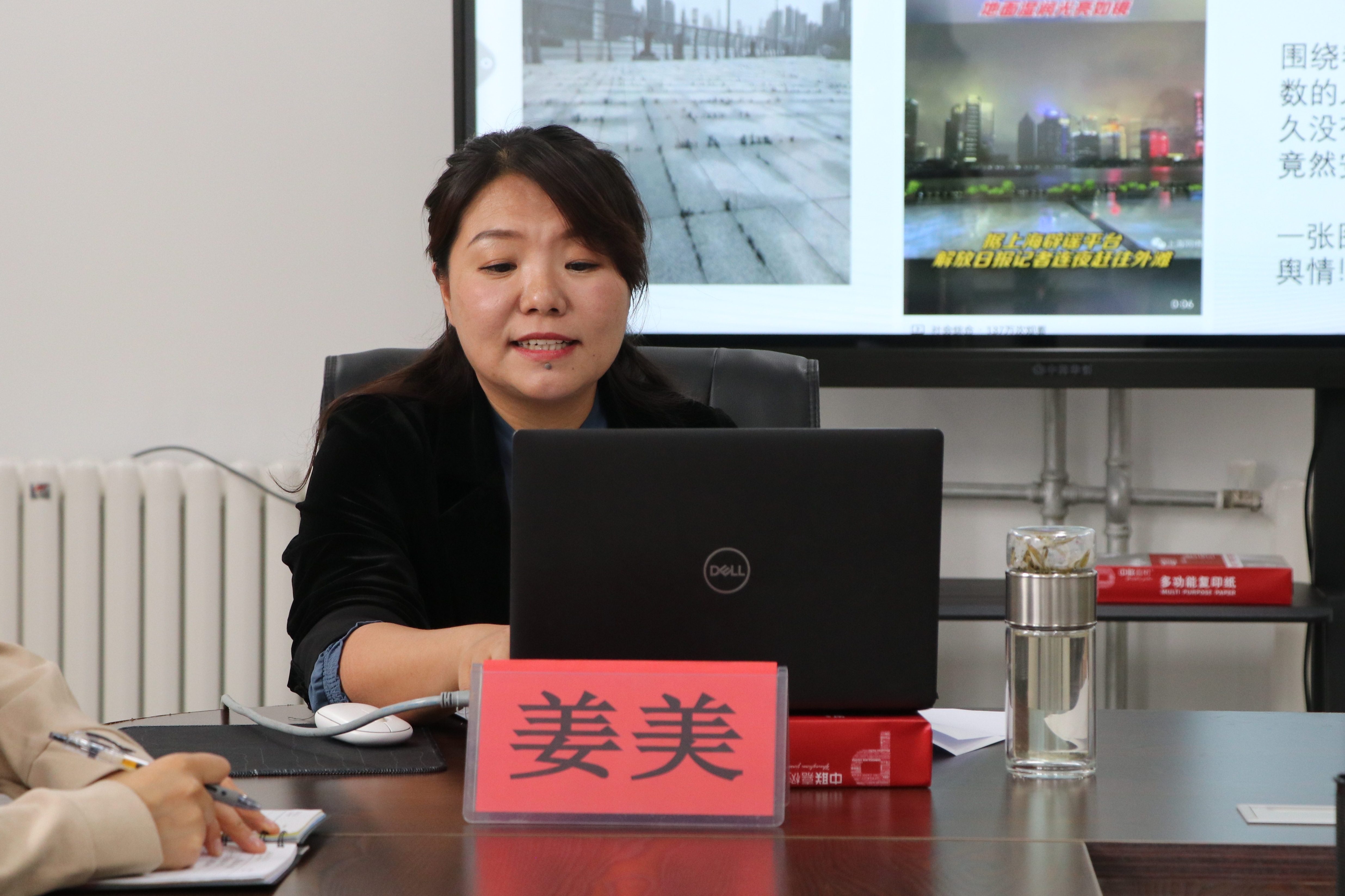 姜美以《第49次中国互联网络发展状况调查统计报告》为引子,通过对各类数据的展示说明,深度剖析了当前网上意识形态的斗争形势。通过新闻实例,姜美生动细致讲解了习近平总书记关于互联网意识形态工作的重要论述,指明互联网日益成为意识形态斗争的主阵地、主战场、最前沿,各级新闻媒体、广大新闻工作者要增强本领,把互联网这一“最大变量”变成事业发展的“最大增量”,从而充分发挥互联网对社会各方面的积极作用。针对“如何提高网络意识形态斗争本领”这一问题,姜美提到,各级新闻媒体要认真学习贯彻习近平总书记“正能量是总要求,管得住是硬道理,用得好是真本事”的要求,做好全媒体传播体系建设,传播正能量,展现新形象。