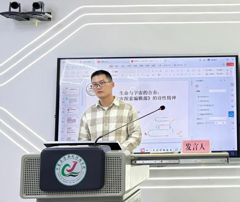 山东大学胡龙飞带来了《生命与宇宙的合奏:论<宇宙探索编辑部>的诗性精神》的主题分享,从现代生活和忧郁气质、通感手法和应和思维、旅程结构和主题隐喻三方面探析了电影《宇宙探索编辑部》独特的诗性精神,着重诠释了贯穿全片的象征主义创作手法,揭示了其对于宏大命题的现代主义思考。