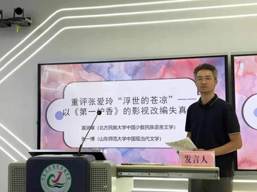 北方民族大学苗润章分享了《重评张爱玲“浮世的苍凉”——以<第一炉香>的影视改编失真为例》,从原著到改编电影全方位探析了以《第一炉香》为代表的张爱玲作品影视化的局限性与可能性。
