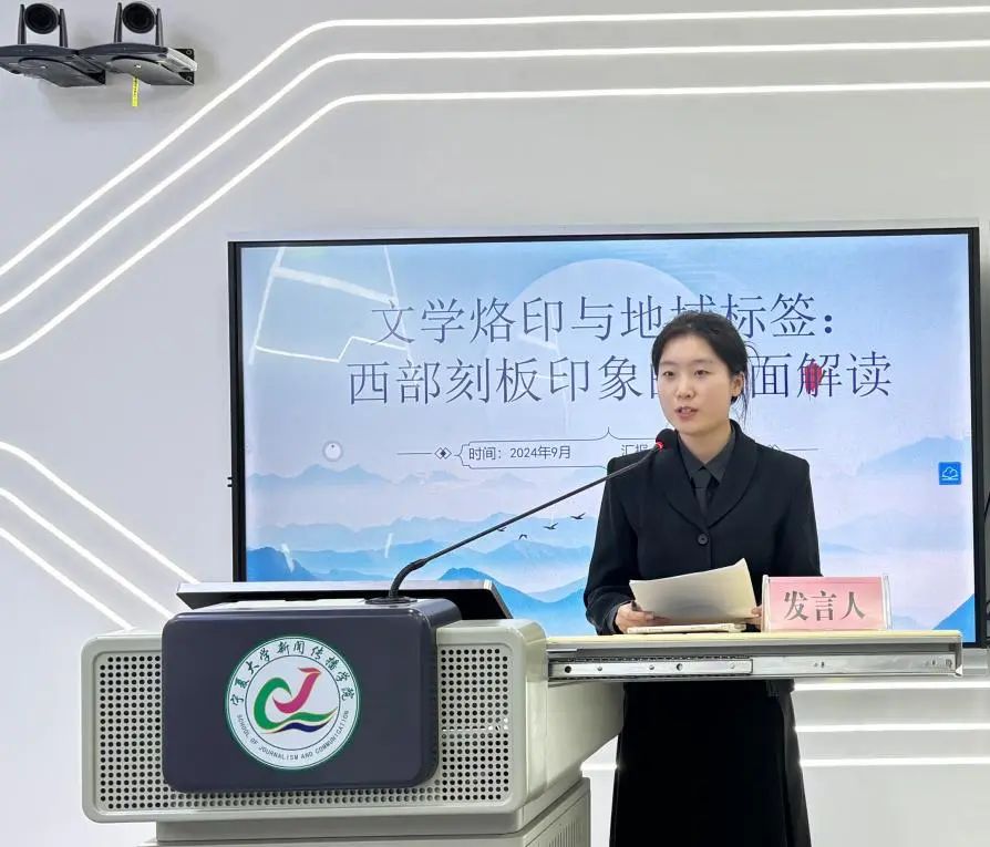 91视频 姚明琬以《文学烙印与地域标签:西部刻板印象的双面解读》为题,从文学作品与地域环境的关系展开探讨,归纳了文学与影视作品之中存在的西部刻板印象,分析了刻板印象对西部影视作品的双面影响。