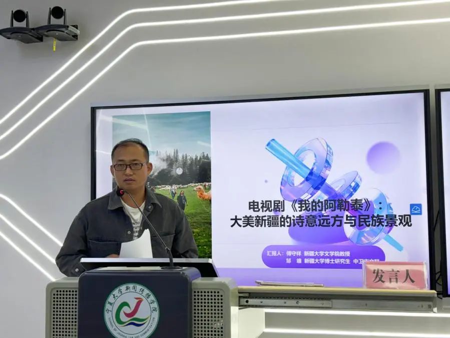 新疆大学研究生邹缠以《电视剧<我的阿勒泰>:大美新疆的诗意远方与民族景观》为题,从影像与文学共筑的诗意远方、传统文化与现代文脉的碰撞与融合、各民族交往交流交融的时代缩影,“此心安处是吾乡”的艺术写照,多角度地剖析了电视剧《我的阿勒泰》所呈现的文化景观与诗意表达。