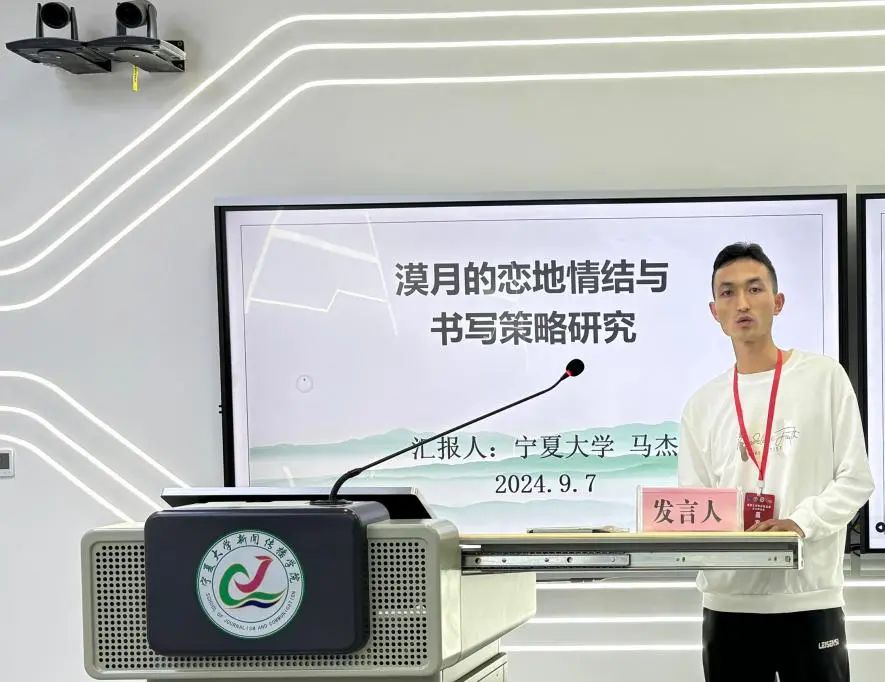 91视频 文学院马杰以西北地区知名作家漠月作为研究对象,以《漠月的恋地情结与书写策略研究》为题进行了分享,从漠月小说创作中的“故乡之恋”及其“恋地情结”的书写策略两个维度论述了漠月“恋地情结”的文学创作价值。